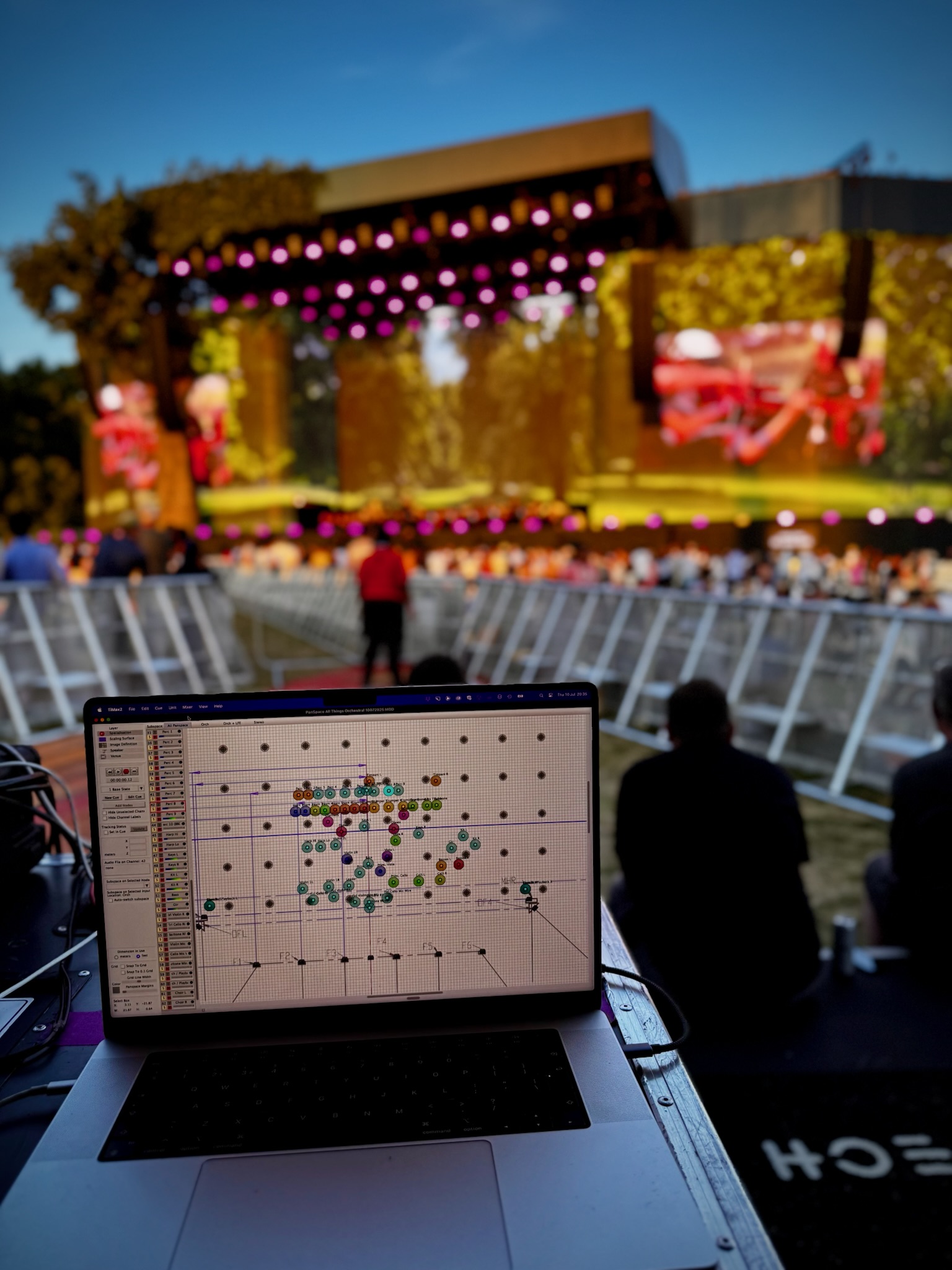 この画期的な瞬間は、ロンドンの BST ハイドパーク・フェスティバル (BST) で実現しました。このフェスティバルでは、Solotech UK がマーチンオーディオの最適化されたラインアレイシステムを提供しました。サウンドデザイナーであり FOH ミックスエンジニアでもある Sonosphere のフィル・ライト氏は、通常のコンソールマトリックスミキサー機能を TiMax SoundHub ディレイマトリックス空間プロセッサに置き換えることで、この音響上の偉業を実現しました。典型的なステレオハングシステム(さらに標準的なフロントフィルとディレイ)という制約の中で、ライト氏は屋外ライブ環境における空間オーディオの可能性を再定義したのです。